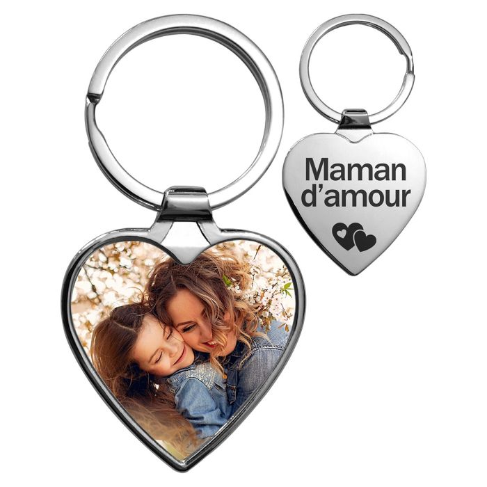 Porte-clés coeur personnalisé photo et gravure