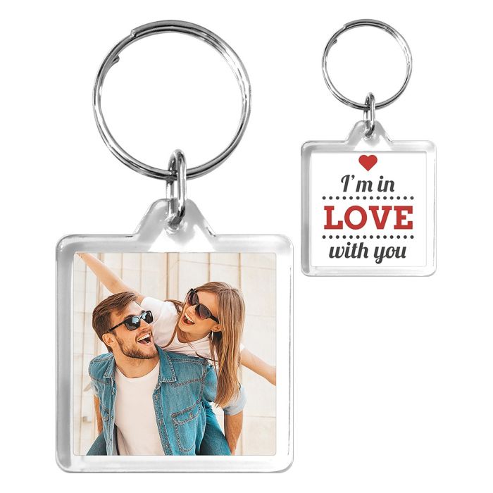 Un porte-clé en plastique acrylique qui protège très bien votre plus belle photo ou votre logo d'entreprise. Son attache en métal, son impression en quadri chromie offset. Tout est fait pour obtenir un résultat de grande qualité ! Ce sympathique porte-clé personnalisable est carré. Il vous donne l'occasion d'avoir une photo de vos proches près de vous au quotidien. Il peut aussi vous permettre d'y glisser votre logo d'entreprise pour faire un cadeau publicitaire à vos clients. Dimension photo 32x32mm