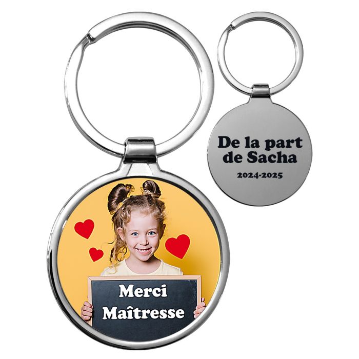 Fabriqué en acier inoxydable, ce porte-clé résiste au temps et aux aléas du quotidien. Son design rond et élégant est parfait pour accueillir votre photo favorite sur une face, tandis que l’autre face peut être gravée avec un message personnalisé, une date marquante ou un prénom. Ce double choix photo + gravure en fait un cadeau original qui ravira petits et grands.