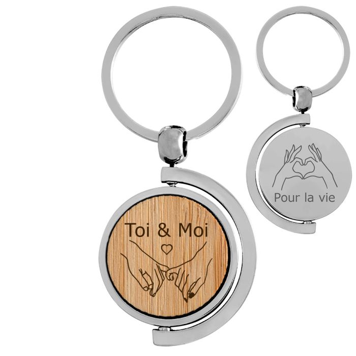 Porte-clé rotatif gravé métal et bambou