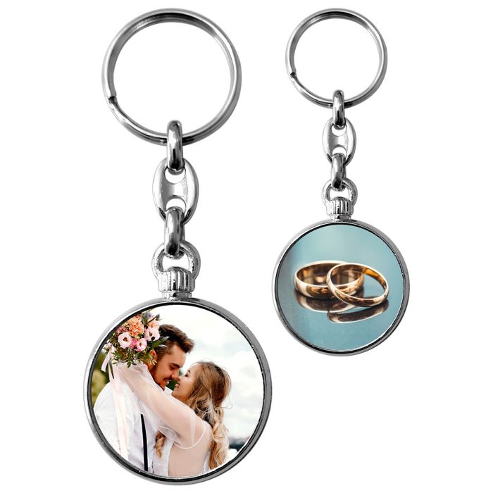 Ce superbe porte-clé personnalisé rond en métal est bien plus qu’un simple accessoire très utile. En effet, grâce à ses deux faces personnalisables avec vos photos, images ou textes de votre choix, vous emporterez avec vous de l'émotion ! la photo de vos enfants, la photo de votre animal… Il devient alors un véritable accessoire décoratif et à la mode. Pas besoin de choisir une seule photo, sur ce porte-clé vous pouvez en mettre deux, une de chaque côté ! Vous pouvez même écrire un texte ou un prénom sur un des cotés.