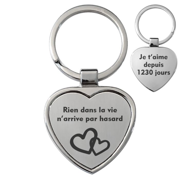 Vous cherchez un cadeau personnalisé et symbolique pour célébrer votre amour ? Découvrez notre porte-clés en forme de cœur gravé en métal chromé, l'accessoire idéal pour marquer les moments importants de votre vie à deux.