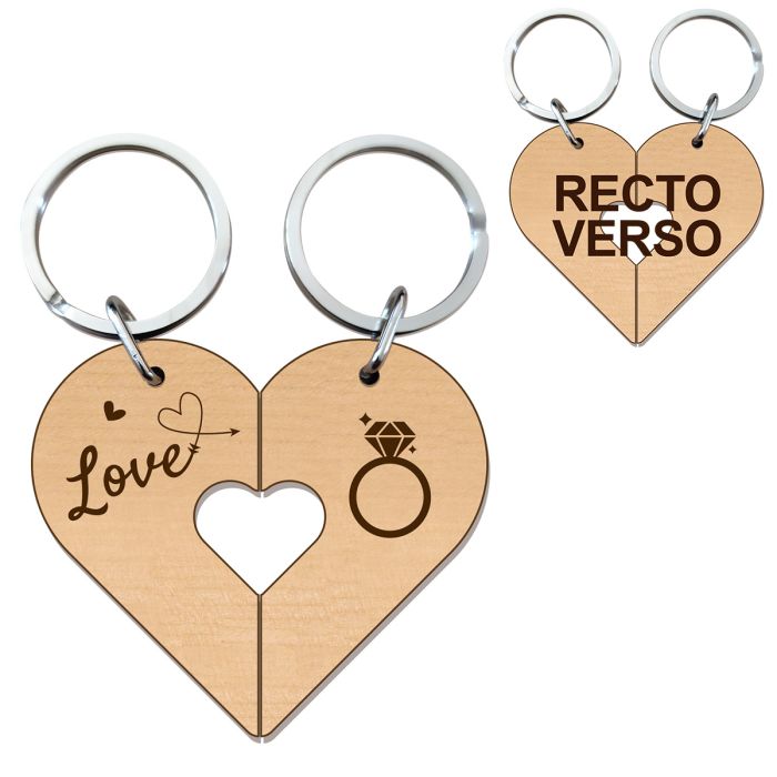 Partagez ces deux porte-clés gravés bois amoureux avec votre âme soeur, un porte-clé personnalisé qui fera certainement plaisir à votre moitié.