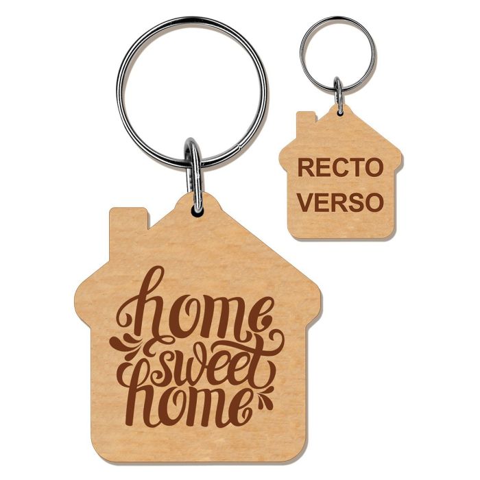 Porte clés bois gravé maison