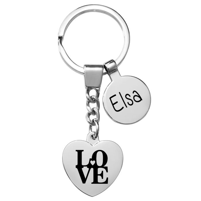 Double personnalisation, double plaisirs. Découvrez ce magnifique porte-clés coeur gravé avec son charm en métal chromé pour un effet wahou garanti !