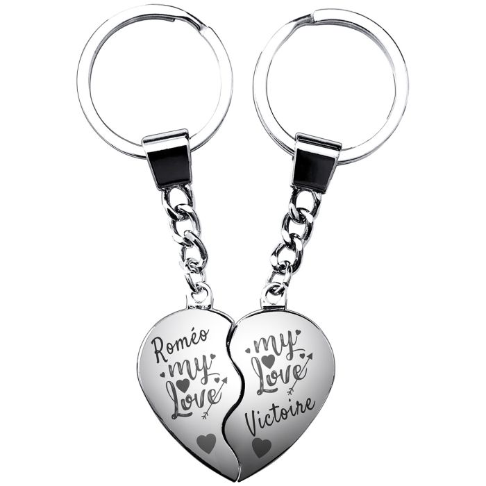 Porte clés couple : porte-clés gravé cœur valentin