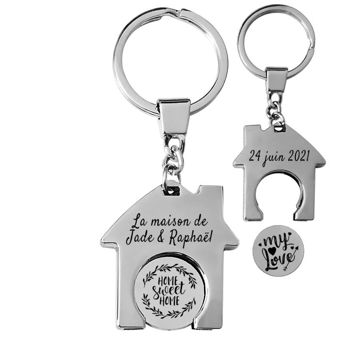 Porte-clés gravé maison jeton de caddie