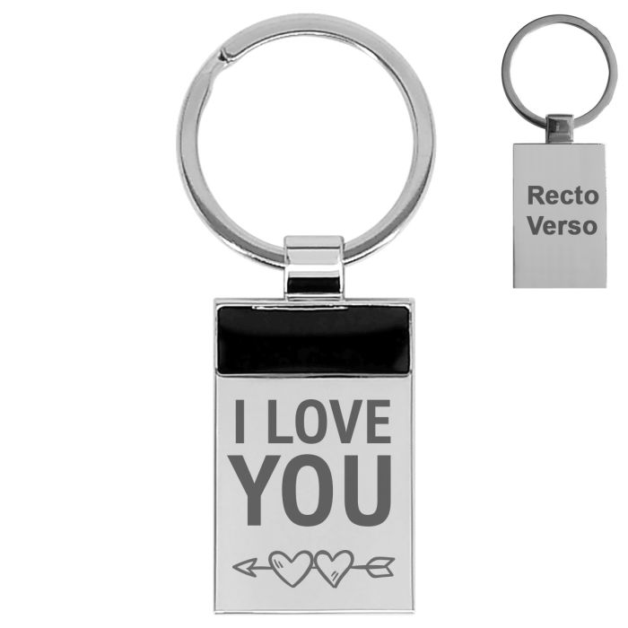Un porte-clés gravé très masculin. Celui ci est tout en métal, avec un insert noir façon Onyx sur le devant. Sa forme rectangulaire et sa surface brillante en font un porte-clés à graver apprécié des hommes. Vous pouvez personnaliser les deux cotés avec un message, un picto... Entreprise, nous pouvons graver votre logo.