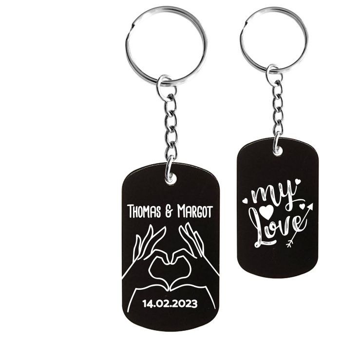 Un cadeau gravé inoubliable que ce soit pour la fête de Noël, un anniversaire ou pour le plaisir d'offrir. Gravez pour l'éternité le texte, la date ou le message de votre choix sur ce porte-clés style plaque militaire de couleur noire.