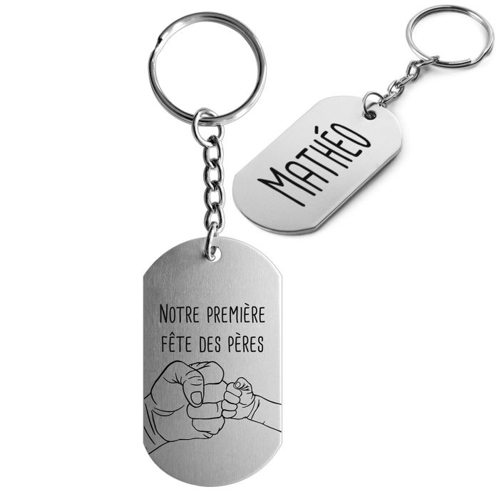 Ce porte-clés plaque d'identité reprend tous les codes des colliers plaques militaire, cette plaque gravée est attachée à son anneau de clés par une chaîne elle aussi très résistante.