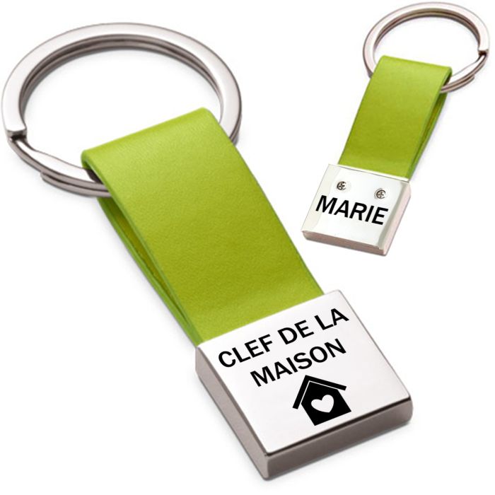 Découvrez l'originalité à travers ce porte-clés à graver avec son attache de couleur verte !