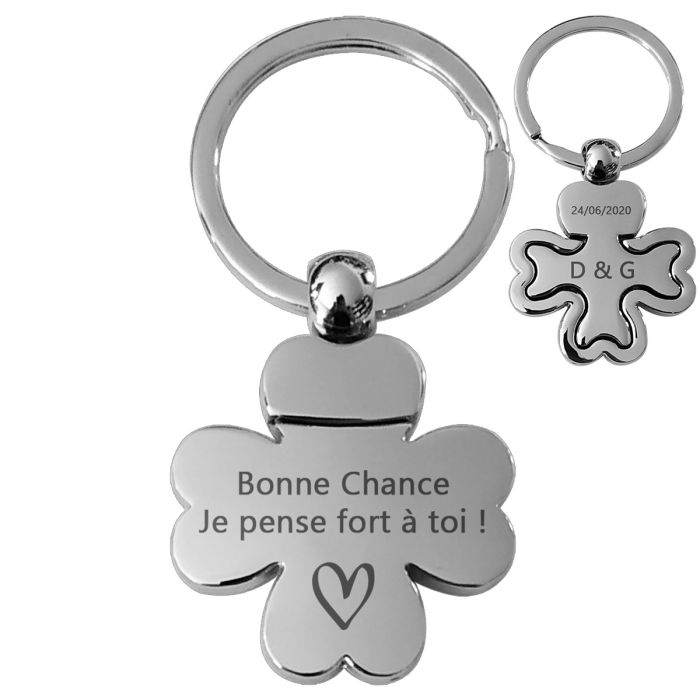 Achetez ce porte-clés gravé trèfle, vous offrirez un merveilleux cadeau gravé personnalisé pour porter chance à la personne à qui vous l'offrirez.
