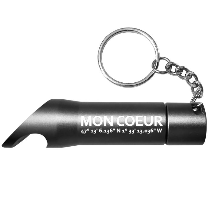 Un de nos modèles les plus utiles, ce porte-clés fait lampe torche mais aussi décapsuleur. A vous de choisir l'inscription que vous souhaitez pour le rendre totalement unique. C'est sur et certain vous ne sortirez sans !
