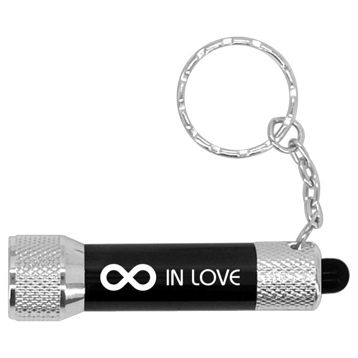Optez pour la double fonction avec le porte-clés lampe torche noir LED personnalisable !