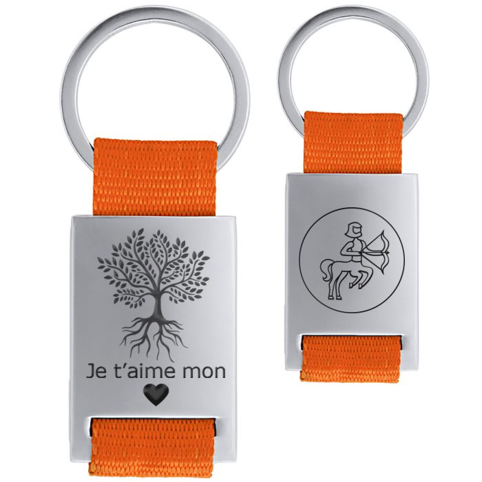 Ce porte-clés métal tissu gravé double face orange est le cadeau homme personnalisé qu'il vous faut !