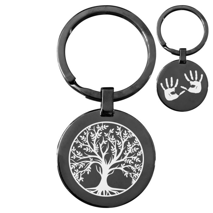 Caractéristiques et dimensions du Porte-clés personnalisé acier rond noir :