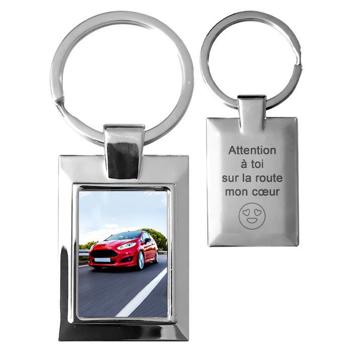 Cadeau personnalisé rempli d'émotion : Porte-clés photo cadre rectangle métal
