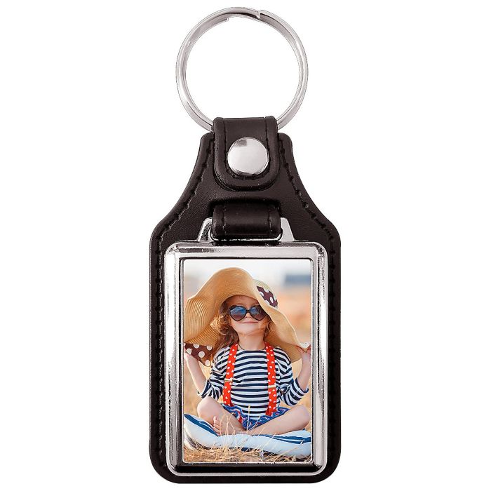 Porte clés photo métal et cuir 40x25